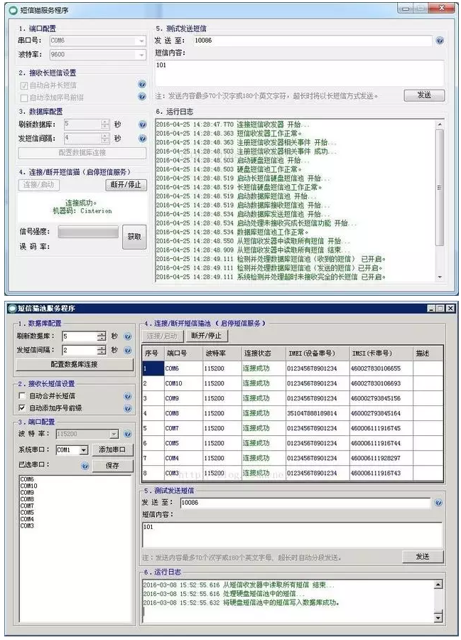 6、短信猫池。每个短信猫模块对应一个虚拟串口,与单口短信猫操作完全一样。