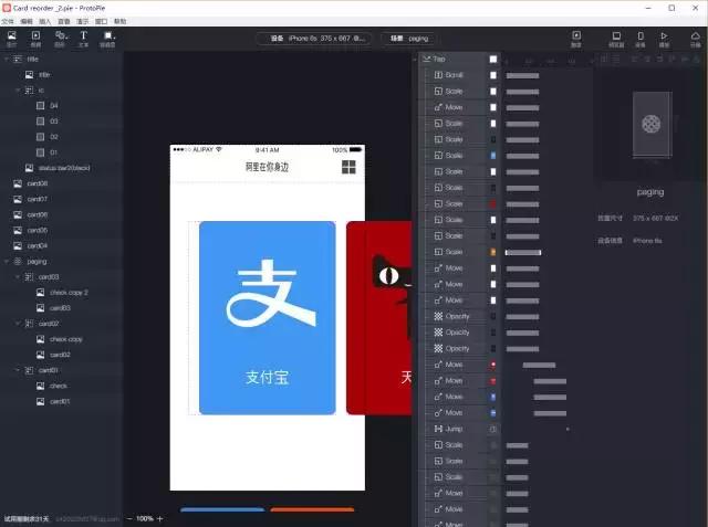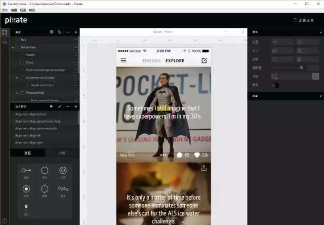 Pixate是图层类交互原型软件。优点:可交互,共享性强,和Sketch结合相对高,同时对Google Material Design的支持比较好,有许多MD相关预设。Pixate的缺点是没有时间线,层级管理不是很明确,图层一多就会非常的繁杂。