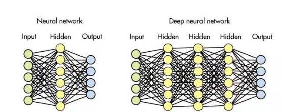 神经网络由一组输入和输出组成,其间含有隐藏层;深层神经网络则包含有多个隐藏层