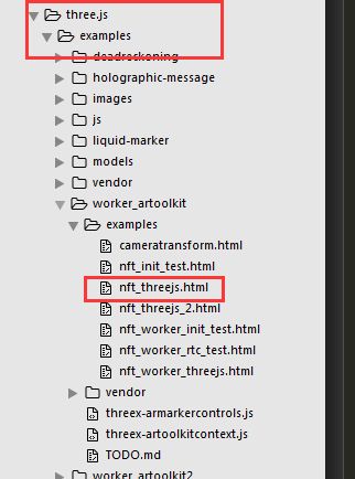 还需要引入依赖的js文件,只需要把这几个文件增加到AR.js-master项目中即可,three.js已经有了,余下的拷过去就行。