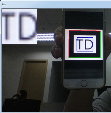 会弹出相机的配置选项,默认的确定就行,然后相机启动以后,把我们刚才生成的图片,对准相机然后相机识别以后会出现红绿色边框线,并且出现左上角识别的文字,这时请注意文字的方向是否正确。
