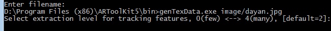 先使用SDK工具进入到D:\Program Files (x86)\ARToolKit5\bin目录,我在这新建一个image文件夹,里面拷了一张.jpg的图片,然后用命令行打开这级目录: