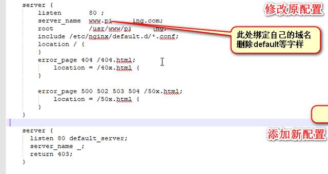 修改原server_name块,其中server_name填写自己的域名