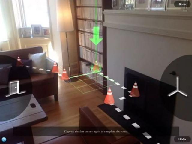 你只要在房内拍摄一圈,它自动会为你生成房间布局的平面图。Magicplan的使用方法很简单。站在房间的中间位置,然后拿着iPhone/iPad对着房间四角按顺序拍摄下来即可,之后自动会合成房间的平面布局图。