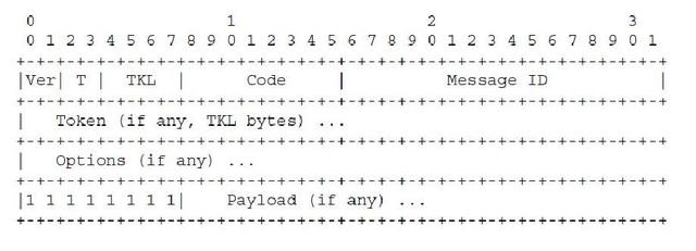COAP协议报文类型可以分为,待确认报文(Confirmable Message)、无需确认报文(Non-Confirmable Message)、确认报文(Acknowledge Message)和重置报文(Reset Message),这几种报文的只要实现在于下面报文格式中T(类型),占2位。