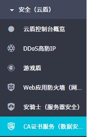 2)找到安全(云盾) 选择下面的CA证书服务如下图
