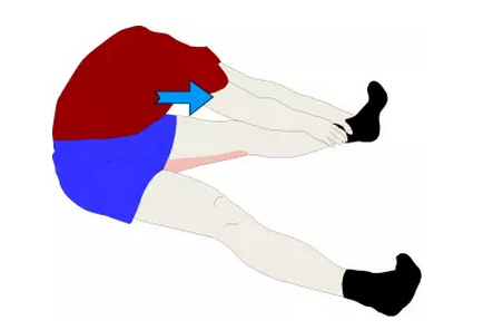动作:挺直背部,试着摸自己的脚踝,当感觉紧张或疼痛时,停住并保持。