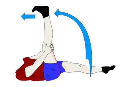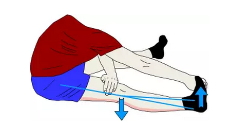 动作:抬腿,当感觉到疼痛时停住并保持15-20秒,可以用手帮忙。