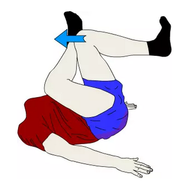 动作:慢慢让左腿靠近胸部,感觉紧张时停下。
