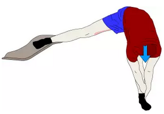 起始位置:将右脚放在桌子、椅子或其他物体上,膝盖必须保持伸直。