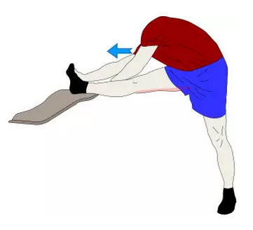 起始位置:把腿放在桌子、椅子或其他物体上,膝盖必须保持伸直。