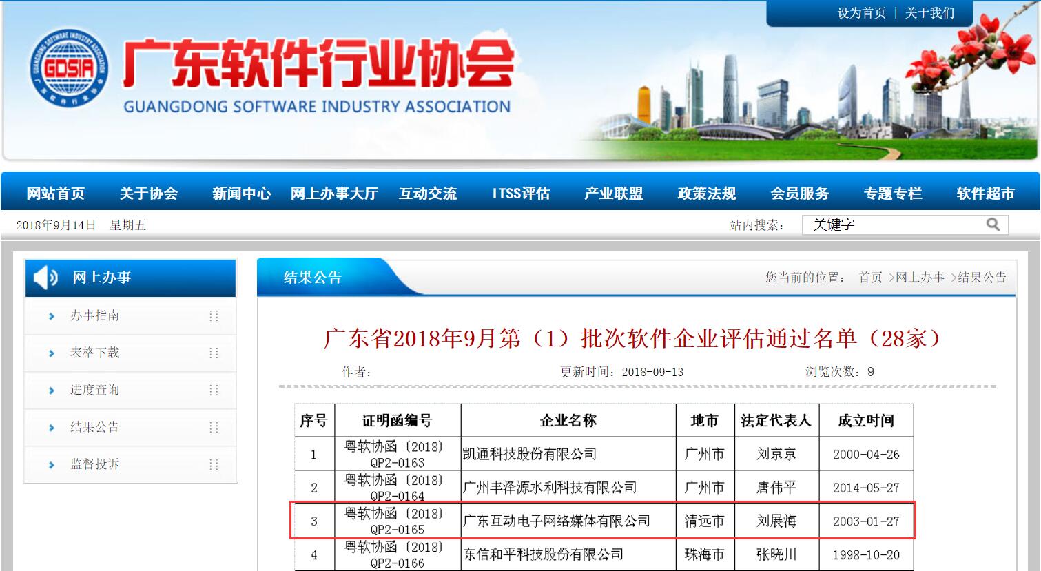 近日从广东软件行业协会传来喜讯。根据软件企业认定标准及管理办法有关规定,经过广东软件行业协会等有关部门的严格审核,本公司于2018年9月份顺利通过广东软件行业协会对软件企业评估,成为广东省9月份第(1)批次通过软件企业评估的企业之一,获得广东省双软软件企业资质,荣誉称号。