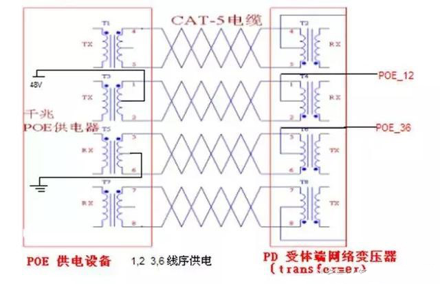 二、利用信号线(1,2,3,6)同时传递数据信号和48V的电源。