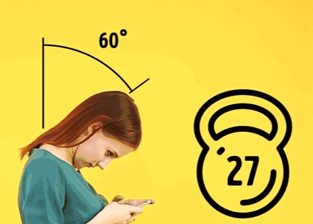 但是,在你前倾低头60度看手机时,颈部就需承受25~30公斤的重量!