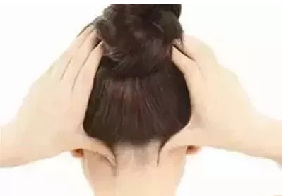 两手拇指分别按在同侧风池穴(颈后两侧凹陷处),其余手指放在头的两侧,由轻到重按揉20~30次。