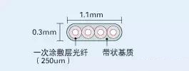 带状光纤由4根、8根或12根不同颜色的光纤组成,芯纤数最大可达1,000根。光纤表层覆有紫外线固化丙烯酸脂材料,使用标准光纤剥套钳便可轻松去除涂敷层,方便多芯融接或取出单个光纤。使用多芯融接机,带状光纤可一次性融接,在光纤数量多的光缆中能轻易识别出来。
