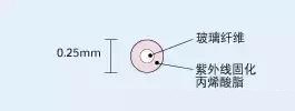 覆有直径为0.25毫米紫外线固化丙烯酸树脂涂敷层的光纤。其直径非常小,增加了光缆内可容纳光纤的密度,使用非常普遍。