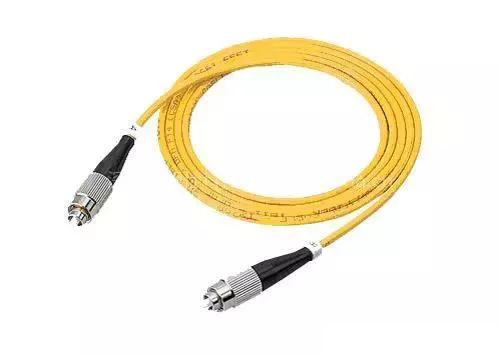 该图为FC/PC型光纤跳纤(非正规叫法是双头尾纤),英文名为PATCH CORD即两头带光纤连接器的软光纤,用于设备至ODF架的连接以及ODF架之间的跳接。光跳线颜色为黄色,表示单模跳纤。