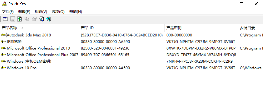 roduKey 是一款免费实用的 Windows 系统及软件安装序列号/激活密钥查看软件!它可以显示出现在电脑上的正版或非正版的 Windows 系统密钥以及 Office、Visual Studio、Exchange Server 等微软软件产品的注册码,在需要重装系统时可以帮你一个大忙!特别是给预装了正版系统的笔记本重装时也能快速找回全部产品序列号……