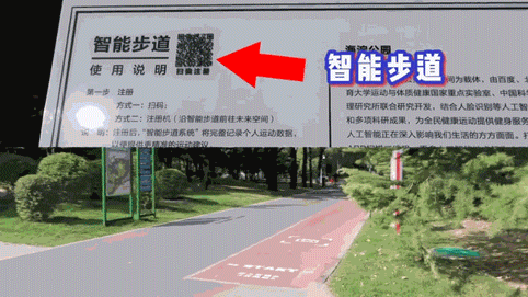 这是一条智能跑道。百度在公园的环形跑道边,设置了人脸识别杆。市民刷脸注册后,跑道就能自动记录运动数据。