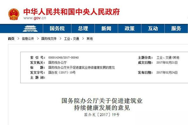 国务院办公厅发布:《关于促进建筑业持续健康发展的意见》