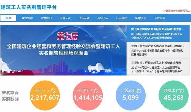 全国建筑工人实名制管理平台正式上线。