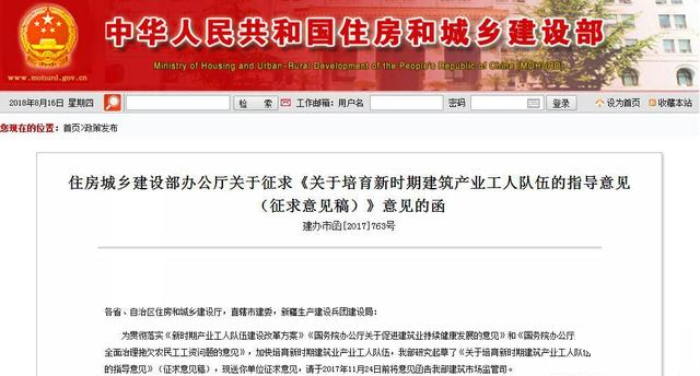 住建部发布:《关于培育新时期建筑产业工人队伍的指导意见(征求意见稿)》