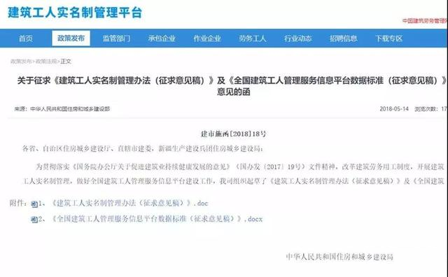 《建筑工人实名制管理办法(征求意见稿)》