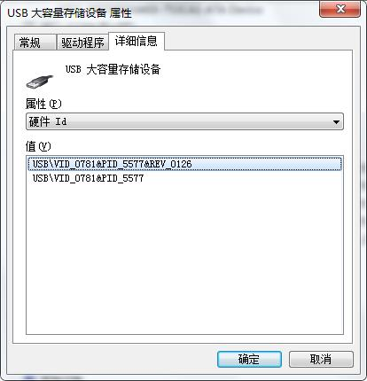 USBVID_0781&PID_5577&REV_0126(这是我的Id值)