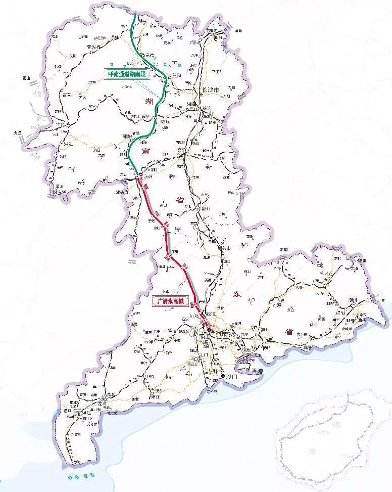 广州经清远至湖南永州高速铁路规划示意图。资料图
