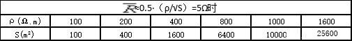 1) 在地网外围增设1圈或2圈环形接地装置,以增大接地网的面积。对于复合式接地网的工频接地电阻的计算式R约为R≈0.5·(ρ/√S),其中ρ为土壤电阻率(Ω.m),S为接地网的面积,从此公式中可以看出,在相同大地电阻率的条件下,要使地网接地电阻减小,就要增加地网的面积,表1列出了在不同土壤电阻率时保持R为5Ω时的地网面积。