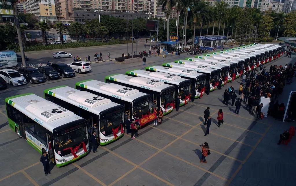 今年2月,清远市区108辆新能源纯电动公交车正式投入运营。资料图