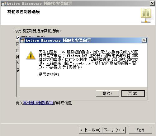 弹出无法创建 DNS 服务器委派的提示窗口 → 选择 “是”