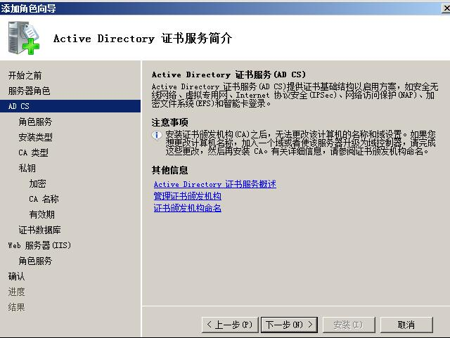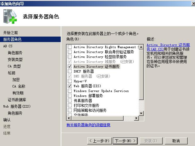1. 安装 Active Directory 证书和 web 服务器(IIS)