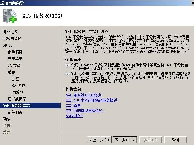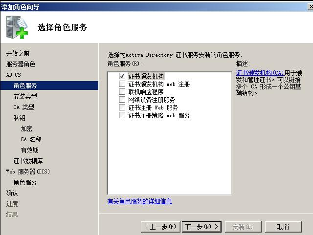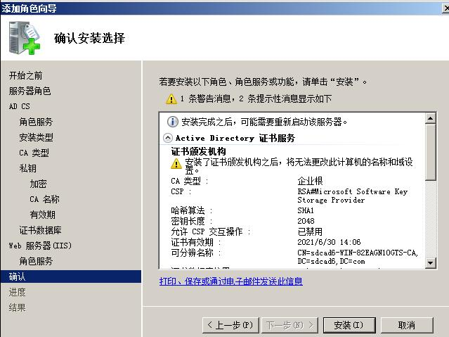 服务器管理器中,添加角色(选择 Active Directory 证书和 web服务器(IIS))