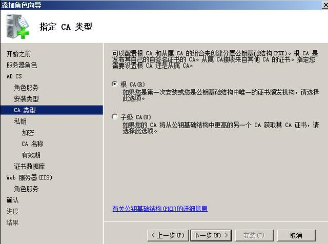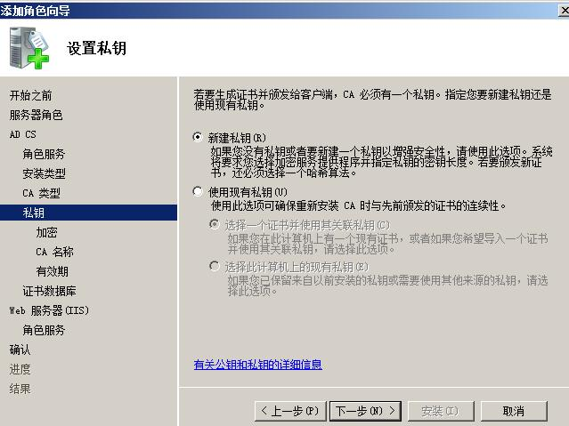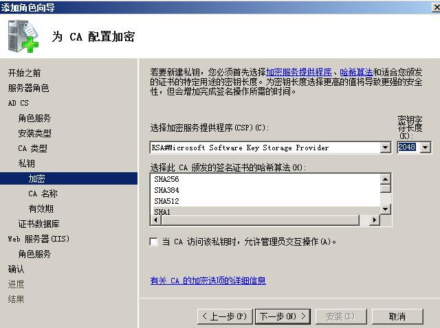 为 CA 配置加密 → 使用默认的加密服务提供程序、算法和密钥长度 → 下一步