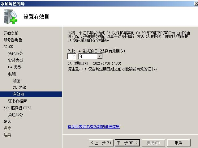 设置有效期 → 使用默认的五年有效期 → 下一步