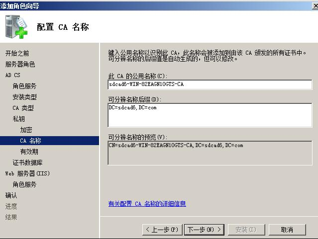 配置 CA 名称 → 使用默认的名称 → 下一步