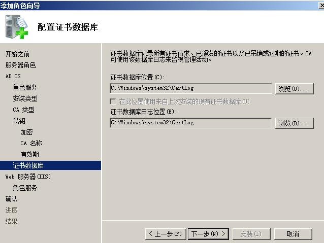 配置证书数据库 → 使用默认的保存位置 → 下一步