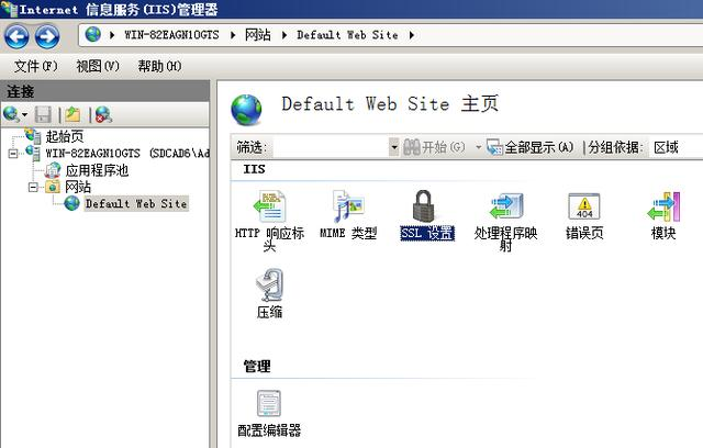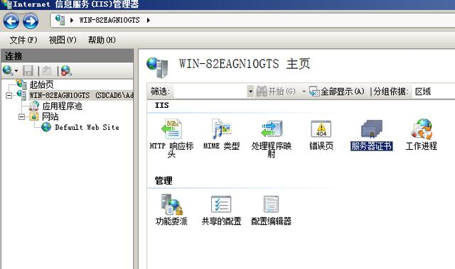 选择 web 服务器(IIS) → Internet信息服务(IIS)管理器 → 服务器证书