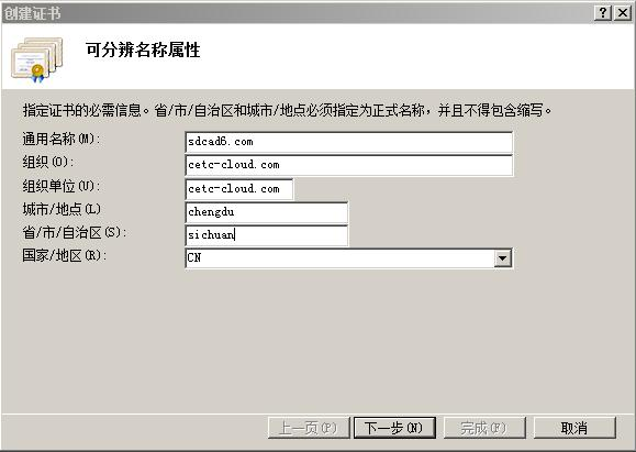 创建域证书(通用名称填写域名:例如 sdcad6.com ),其他的信息任意填写