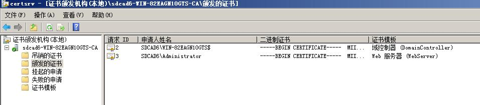 “开始”菜单 → “管理工具” → 证书颁发机构,查看颁发的证书,可以看见域控制器证书才行