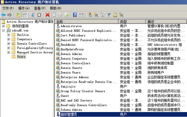 域用户也进行了同步,可以查看到主域控先前新增的姓名为超级管理员的用户