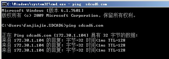 命令行中输入:ping sdcad6.com,可以 ping 通才行