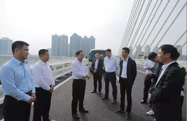 市委书记郭锋一行到北江四桥调研大桥建设进展情况。清远日报记者 吴明 摄