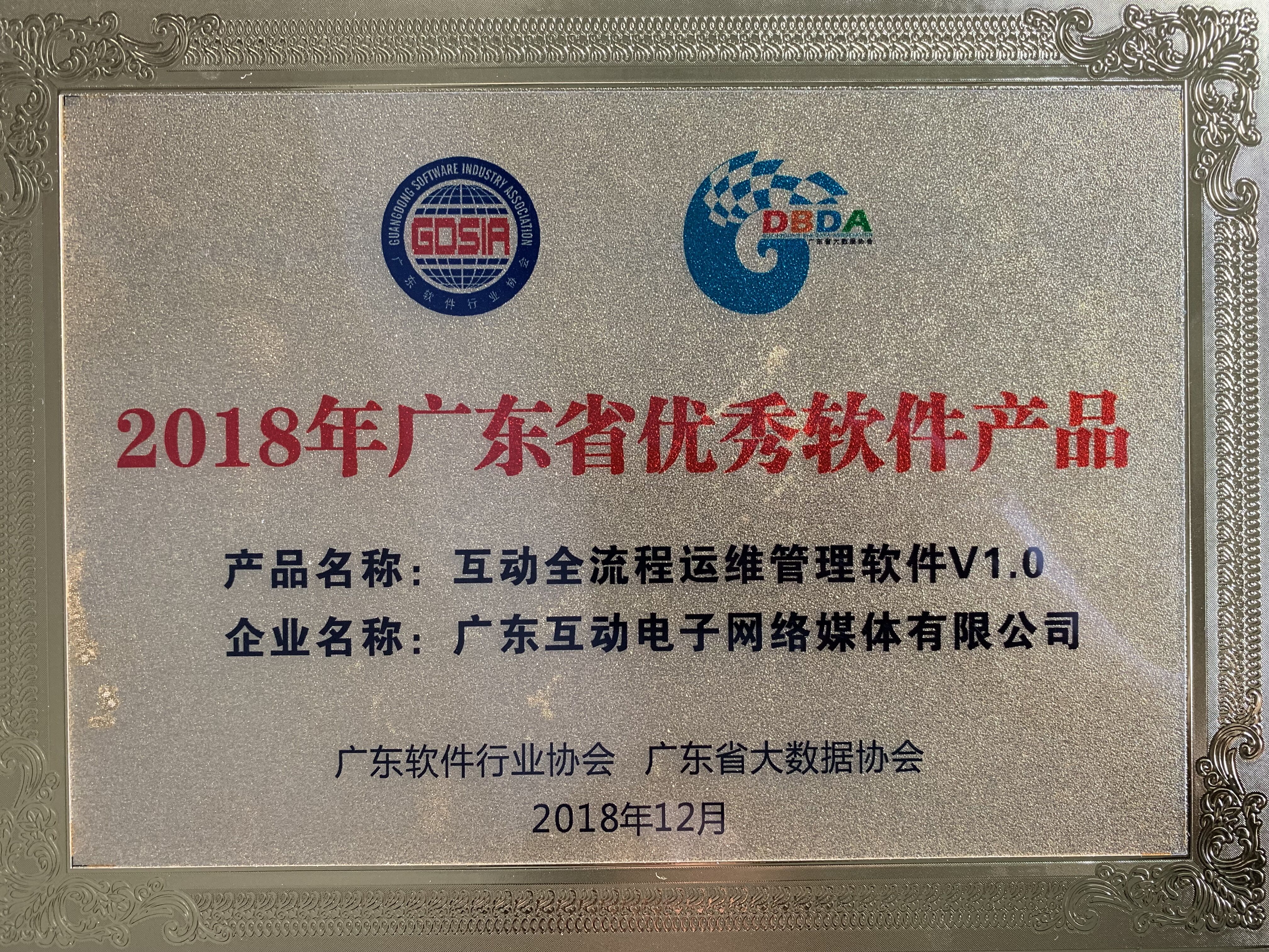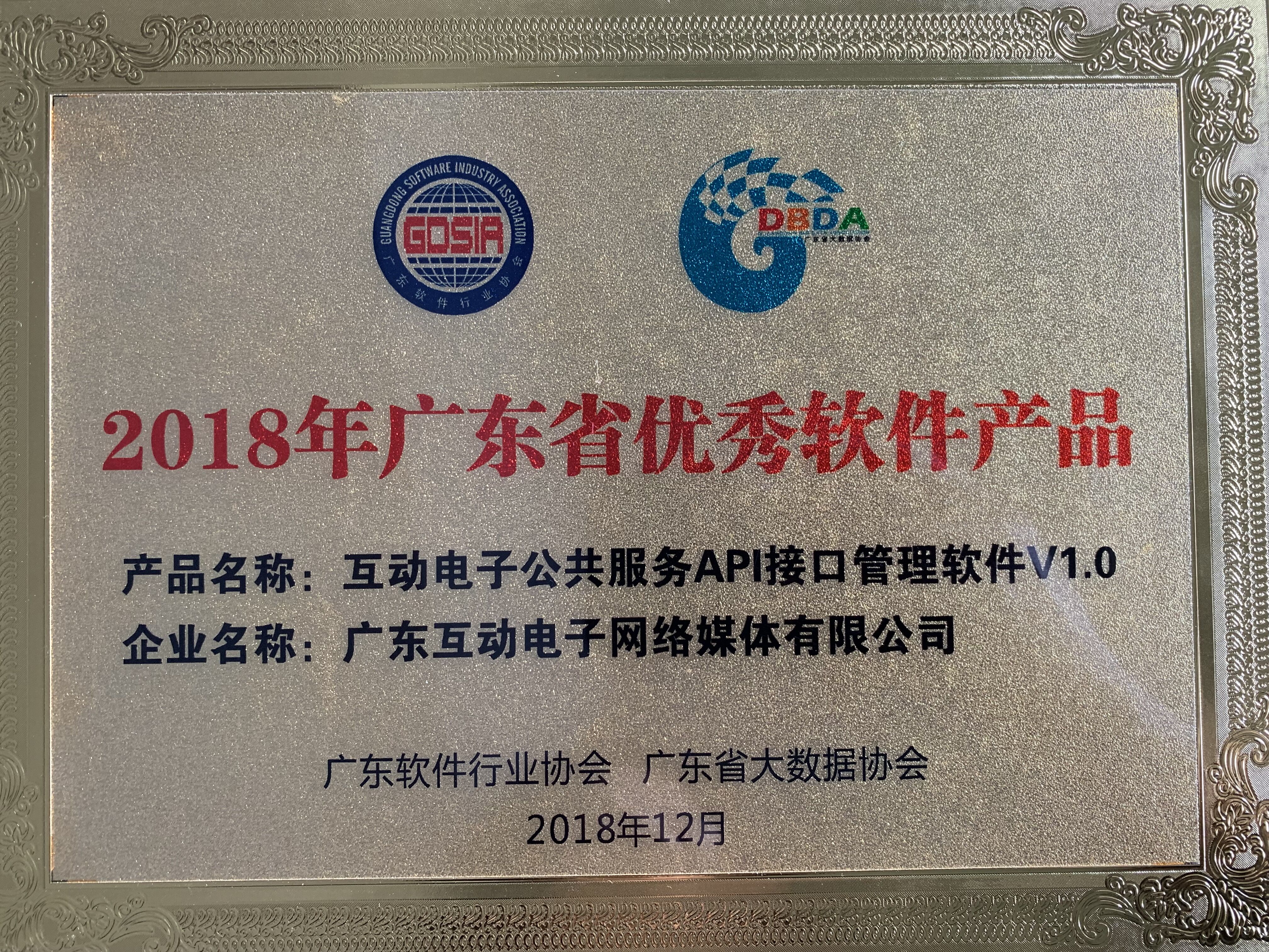 近日,2018年广东省优秀软件产品已经得出评选结果,广东互动电子网络媒体有限公司研发的“互动电子公共服务API接口管理软件V1.0”和“互动全流程运维管理软件V1.0”这两个软件产品经过层层角逐喜获奖项。