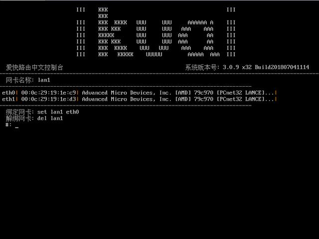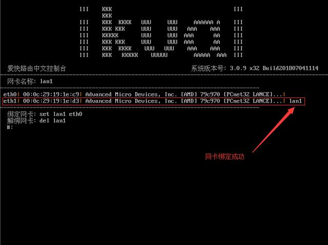 登录路由用的网卡绑定成功如图:输入命令:q 回车退出返回主菜单。