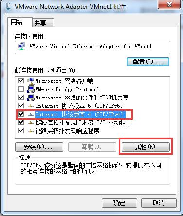 出现如下图右键点击:VMware Virtual Ethernet Adapter for VMnet1 选择-属性:
