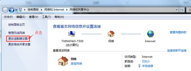 提示:这是windows7系统设置方法,打开网络和共享中心-更改适配器设置