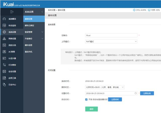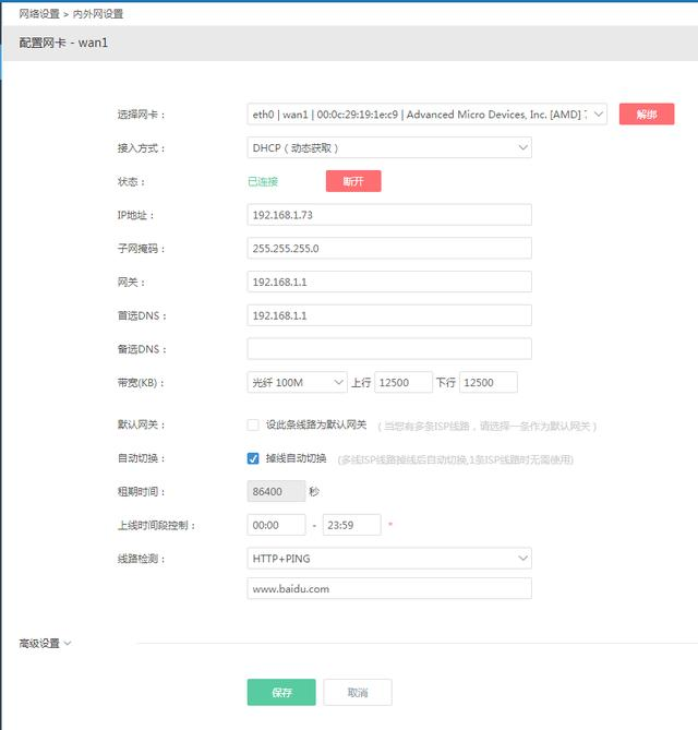 设置好后点击:保存 完成设置。下面图是软路由ikuai图片展示
